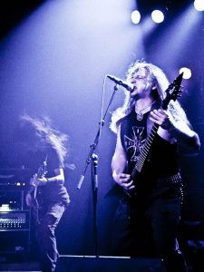 Az estét nyitó Huntress egy amerikai heavy metal formáció női énekessel. Miután ez a mondat tudatosult bennem még a koncert előtt, tudtam, hogy bajban leszek a produkciójukkal. Alapjáraton nem a szívem csücske a heavy metal önmagában, az pedig már csak hab a tortán, hogy a legtöbb női énekes az ilyen zenekarokban inkább operaénekesnőnek képzeli magát, és bántó magas hangon kornyikálja végig a számokat. Hatórás kezdéssel indult az este az ő koncertjükkel, és azt leszámítva, hogy a hölgy mögött álló derék fiatalemberek igen erős színpadképet mutattak, konkrétan inkább menekülni akartam a zene elől. Illetve főhősnőnk rikácsolása elől, aki a koncert felét egy csuklyás fekete lepelben töltötte. Maga a stílusirány sem a világom, de azt hiszem objektíven meg szoktam tudni ítélni, hogy mi jó, de itt egyszerűen annyira taszított az ének, hogy képtelen voltam mögötte meghallani a zenei értéket. Ettől függetlenül az összegyűlt pár ember ahogy láttam nem hagyta el gondterhelt tekintettel a termet, hogy inkább a kerthelységben pihenje ki a sokkot.