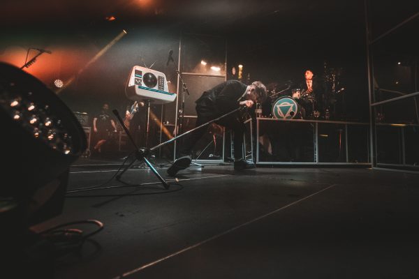 Egyébként a zenekar saját magához képest aránylag jófiúsban tolta a bulit, semmi stagedive, semmi pultra mászás, semmi erkélyről leugrálás, csak simán pörögtek a színpadon zakóban és nyakkendőben. Meg azért hoztak egy elég komoly díszletet is: kezdetnek kapásból ott a lemezborítóról ismerős retro számítógépbe épített szinti, meg egy jó pár különböző színekben és mintákban világító fényoszlop, amik már magukban felértek egy elkápráztatással. A hangzás nyilván patika, egyedül Rory gitárja volt kicsit kevés, de ez is legfeljebb néha tudott zavaró lenni.