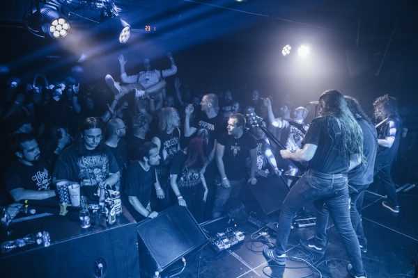 Egy ilyesmi metalbulin nagyjából alap, hogy sokakon díszelegnek az előzenekarok pólói vagy a főbanda helyben kapható mörcse - most viszont cseppet sem meglepő módon rengetegen érkeztek a pár hete zsákmányolt Voivod turnépólókban, még maga David DiSanto, a Vektor frontembere is. Egy közülünk, mondhatni. Az este másik sajátossága, vagy nevezzük inkább tanulságnak, amit legközelebb is érdemes észben tartani a ruhásszekrény előtt állva: