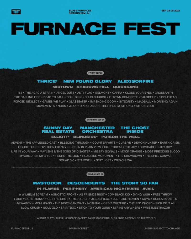 Valószínűleg NuSkull-mércével mérve az év egyik legmenőbb fesztiválja a Furnace Fest volt, amit Alabama állam Birmingham városában rendeztek meg idén 21. alkalommal, szeptember 23. és 25. közt. Elég csak a fellépők névsorát megnézni: Thrice, Sunny Day Real Estate, Mastodon, Alexisonfire, The Ghost Inside, Shadows Fall, Quicksand, Poison the Well, In Flames, Periphery és még rengeteg jobbnál-jobb zenekar és előadó a punk, hardcore, emo és metal műfajaiból. Az egyetlen probléma csupán, hogy egyikünk se volt ott. Hála viszont a világhálónak és a jófej emberkéknek, akik használják, kicsit mi is úgy érezhetjük, mintha ott lettünk volna ezen a nem mindennapi eseményen. Össze is gyűjtöttünk pár momentumot a fesztről, amitől valószínűleg a bokánkat is lecsurgattuk volna élőben.