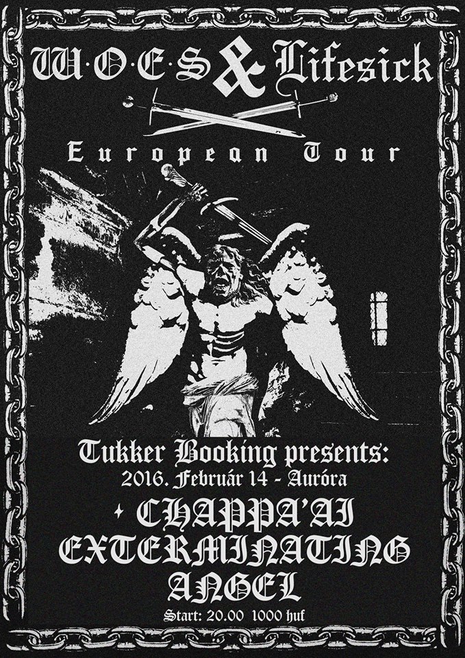 Első európai turnéjuk alkalmából tiszteletét teszi nálunk a fiatal és ambiciózus Woes, amelynek tagjai egy sötét hardcore-ral átitatott neo-crust egyvelegben terjesztik az elkeseredést, bánatot és reménytelenséget. A műsoruk gerincét a tavaly megjelent Cold Soil kislemez fogja adni, azonban reméljük a hamarosan elkészülő új anyagról is felcsendül egy-két dal. Az est másik külföldi fellépője a Lifesick lesz. Mint azt már a nevükből is sejteni lehet, ők sem a zöldellő rétekről, és csicsergő madarakról fognak zenélni. A banda saját szavaival élve gyűlölettel teli, depresszív hardcore-t játszik, amelynek ihletéül maga a nagybetűs Élet szolgált.