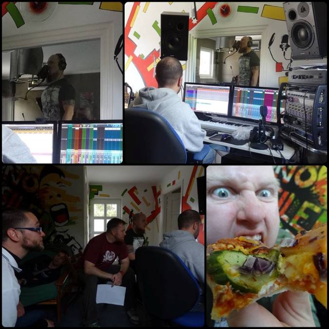 Csabi: Igen, a hangulat valóban csodás volt. Bár az igazat megvallva én csak az énekfelvételeken és a keverésen vettem részt. Nagyszerű volt Simivel újra együtt dolgozni és hihetetlen, hogy mennyit fejlődött a srác az elmúlt 4 év alatt. Mindig is figyelemmel követtem a munkáit és a mi esetünkben az jelentette a kihívást, hogy egy igazi élő, mocskos soundot teremtsünk meg. Azt hiszem abban mindannyian megegyezhetünk, hogy Simi leginkább a „műtőasztal metalcore” pápája hazánkban, de szerencsére elég hamar megtaláltuk a közös utat az elképzeléseink megvalósítása felé. A dobfelvétel után a basszus és a gitár Tomi házistúdiójában került rögzítésre, majd miután összeállt a zenei alap, jöttem én. Először azt is otthon akartuk felvenni, mint a Till Death’ lemez esetében, de aztán úgy döntöttünk, hogy a legjobb az lesz, ha azt is inkább Siminél vesszük. És jól döntöttünk! Nagyon gördülékenyen haladt a munka és Siminek is akadtak bőven jó meglátásai, ötletei. Szeretem, ha a velem szemben ülő ember nem csak nyomogatja a gombokat unottan, hanem tud inspirálni és megmondja a véleményét is, ha kell. Aztán két alkalommal ismét le kellett utaznom a keverés és a végső maszter végett, ez az állandó utazgatás kissé megviselt kicsit nehezemre esett összeegyeztetni a dolgokat, de minden egyes percet megért az egész!