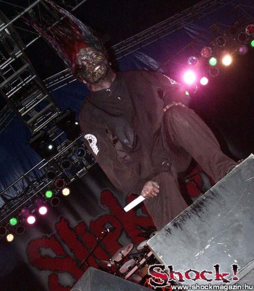 Az viszont teljesen megmaradt, hogy amikor a buli elérkezett a Spit It Out c. dalhoz, akkor ott egy elég cinkes értetlenkedés volt a zenekar és a közönség között. Ekkoriban már nagy gyűjtője voltam a Slipknot bootleg koncertfelvételeknek, a Disasterpieces DVD-t pedig napi rendszerességgel pörgettem, így nem volt túl nagy truváj levágni, hogy ennél a dalnál bevett szokása a zenekarnak, hogy egy adott résznél leültetik a közönséget, majd a "Jumpadafuckup!" vezényszóra, mindenkinek fel kell ugrania. Ez igencsak nehezen ment át a közönségnek, amit láthatóan Corey egy kicsit sérelmezett is, hiszen nem igazán akart összejönni ez a mutatvány. A körülöttem levőket próbáltam képbe helyezni, hogy mi a feladat, de gondolom az akkor húszas éveiben járó fiatalság igencsak furcsán nézett rám, hogy mit magyaráz ez a kis hülyegyerek és miért guggol le. (nevet) Aztán nagy nehezen csak sikerült összehozni a zenekar és a közönség közötti szinkront és tovább tudott haladni a koncert! A ráadás szintén két nagyon nagy kedvenc tételem volt, a People = Shit és a Surfacing, ami szerintem minden jelenlevőnek felrakta az i-re a pontot és senki nem ment haza elégedetlenül. A koncert után a 10.000+-os tömegben nagy nehezen megtaláltuk egymást Édesanyámmal, aki akkor már nagyon bosszús volt, hiszen halálra aggódta magát, nem mellesleg pedig összetaposta papucsban a lábát a sok acélbetétes bakancsos rocker. Szerencsére hamar megenyhült, hiszen a gyermeke arcán olyan mértékű boldogságot látott, amit addig talán soha.