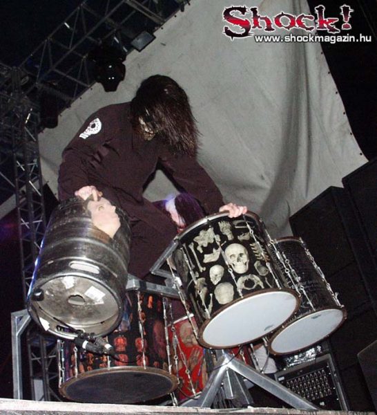 Elsodródtam a társaságomtól, nem akárhogy... A bal cipő leesett a lábamról. Aki ott volt, tudja hogy esélytelen volt megtalálni, visszaszereezni, visszavenni lábra. Slusszpoén, hogy az akkorra tőlem már isten tudja hány mèterre sodródó társaságom amúgy megtalálta koncert közben a cipőm. Nyilván nem realizálva a ruhadarab tulajdonosát valamint hiányának fontosságát, nevetgélve előrekúrták a közönségbe. Maga a koncert elemi volt, cirkusz, horrorfilm egyben, mindenkit magával ragadott és a közönség óceánként hömpölygött, én ilyet sose éreztem se előtte, se utána. Ok - mondom -, ez így nem teljesen halad tervek szerint, de mindegy, én itt vagyok, a Slipknot itt van, hadd szóljon! - Nagyon taktikusan előrevettem a hátizsákomat, vigyázva a tartalmára, mint egy igazi debil. A vigyázás nem jött össze. Egy kéz megragadta a táskám, elkezdte húzni, két magas váll összezárt, és mire kirángattam egy ismeretlen "Slipknot-rajongó" kezéből a táskám, addigra abban se pénztárca, se pénz, se személyi, se mobil nem maradt. Mivel itt már tényleg csúcsra járatva harcolt bennem a láz és az alsópolcos barna sör, így egy kicsit kiélveztem, ahogy Martens bakancsok tapossák a zoknis bal lábam, de az 100%, hogy nem bírtam végig a koncertet. Hazaindultam egy tescós zacskóval a cipőtlen lábamon, majd hazaérve konkrétan ájultan behánytam az íróasztalom alá. Zeneileg azt tudnám elmondani a Slipknot teljesítményéről, hogy iszonyat bebasztam. Úgyhogy