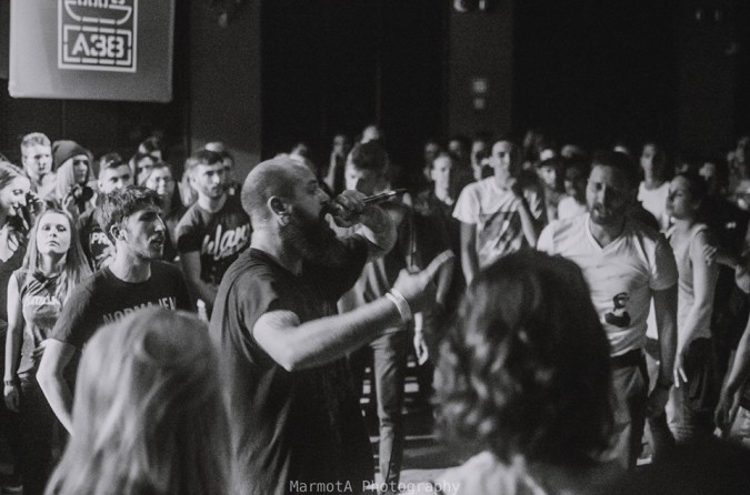 A dallamos hardcore (és persze poszt-hardcore) körökben egyre nagyobb szeretetnek örvendő Being As An Ocean kezdte az estét, hogy mindenki lelke meglágyuljon a zúzás előtt a zenekar spoken word érzelemjátékával. A terem kezdés előtt 10 perccel még csak félig volt, de mire az első szám felcsendült, már bőven betöltöttük a teret. Az erőteljes kezdéssel jellemezném a bulit, hiszen Joel már kapásból a tömegben kezdte, amit úgy a koncert végéig tartott is, teljesen együtt élt a bulival és a közönséggel, ami nagyon szimpatikus volt. Szíves örömest átnyújtotta a mikrofont a közönségnek, ahogy a bodysurf ének kombó is remekül ment neki. A hangzás és a hangulat is hátborzongatóan jó volt, engem végig rázott a hideg. Ami a többieken is látszott, hiszen mindenki együtt énekelt, a Little Ritchitől kezdve a The hardest part... című nagy kedvencig az összes dal megszólalt a torkokból. Tökéletes felvezetése volt az estének, hiszen ez a koncert inkább mélyebb volt, mint zúzda, de pont így volt tökéletes, mert a srácok így is kellőképp bepörgették a tömeget. (Galló Tímea)