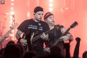 Szombat este a Dürer Kertben a banda egy teljesen önálló, előzenekar nélküli, de így is fullos show-val várta a közönségét: az ütős hangzás mellé a helyhez képest szokatlanul komoly fénytechnikával, na meg egy igen alapos setlisttel készültek, bár utóbbi nem meglepő módon inkább kedvezett a Négyszögöl érás, mintsem a Product of Our Imagination albumos rajongóknak. Magyarán nagyrészt az utolsó évek kvázi popmetálnak nevezhető slágerei záporoztak, kezdésnek mindjárt egy Megszentségteleníthetetlenségeskedéseitekért + Pomogácsok kombó 2009-ből, majd szép sorban az összes többi magyar szám egészen a 2015 végén utolsónak megjelent Önvakításig. A régebbi, angol nyelvű lemezekhez csak érintőlegesen nyúlt vissza a banda, ezúttal szó sem volt olyan masszív oldschool blokkról, mint a búcsúbulin, csak mutatóba került elő pár olyan alapvetés, mint a Kain, a Horrified by the Sun, a Go Get a Life vagy a Worst Case Scenario. Utóbbi Paradise Lost-hangulatú ősdoom zárótémája még mindig halálos, a végtelenségig el tudnám hallgatni. Az este vége felé befigyelt pár nívós vendég is, a Lost in Time-ba Téglás Zoli, a Testem a vászonba meg Wolfie szállt be, ahogy a lemezeken is - utóbbi mondjuk kicsit belezavarodott a saját rapszövegébe, de ezt tudjuk be a rutintalanságnak, lévén valószínűleg évek óta nem is hallotta azt a nótát.