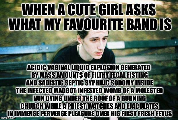 Az Acidic Vaginal Liquid Explosion Generated by Mass Amounts of Filthy Fecal Fisting and Sadistic Septic Syphilic Sodomy Inside the Infected Maggot Infested Womb of a Molested Nun Dying Under the Roof of a Burning Church While a Priest Watches and Ejaculates in Immense Perverse Pleasure over His First Fresh Fetus az új kedvenc zenekarod