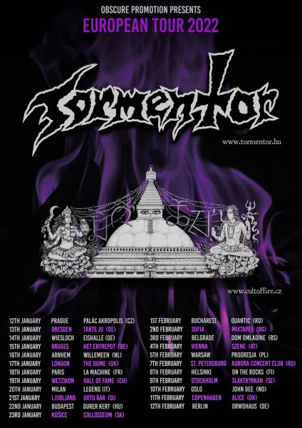A tavaly szeptemberi, tatabányai vírusűző klubbuli után megvan a Tormentor következő hazai dátuma: ha minden jól megy, a jövő év elején a Dürerben fog koncertet adni a pár éve újjáalakult legendás magyar black metal-alakulat. Csihar Attiláék a 2022-es EU-turnén a cseh Cult of Fire társaságában szabadítják el a poklot, akárcsak három éve az A38 Hajón. A január 22-én esedékes budapesti buli eseményét itt lehet jelölni, illetve el lehet kezdeni a hallójáratok felkészítését a sötét taktusok befogadására: