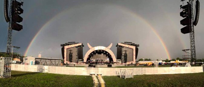 A koncert a Zeltweg község melletti katonai reptéren található iszonyat nagy területen került megrendezésre, a Red Bull Ring (régen A1 Ring) versenypálya közvetlen közelében. A kilátás csodálatos volt, a hegyek között igazán impozáns látványt nyújtott a hatalmas színpad és a rengeteg ember. Már induláskor sejthető volt, hogy iszonyat mennyiségű nézőre lehet számítani (több szervezett buszos út közül, az Eventim által rendezett utat vettük igénybe és csak a Dózsa György útról indult 8-10 (!) busz, nem beszélve a többi budapesti vagy vidéki indulásról), de amikor odaértünk így is eltátottam a számat az embertömeg miatt. Hivatalos becslések szerint 120 ezer ember vett részt az eseményen, számomra mégis az volt a legnagyobb meglepetés, hogy megdöbbentően gördülékenyen ment az emberek koordinálása. Több száz busz érkezett a bulira a környező országokból (a mienké a 177-es számot kapta, de láttam 330-ast is), rendőrök segítségével kísérték fel a versenypálya melletti\mögötti részre, innen kellett visszasétálni a koncert helyszínére, persze az utat végig árusok szegélyezték, az alkoholtól kezdve a különböző nemhivatalos zenekaros pólókon át (ami nyilván valakinek vonzóbb volt az olcsóbb ár miatt mint a benti hivatalos cuccoknál) AC/DC-s világító szarvakig mindent lehetett kapni, de személyes kedvencem a görkorcsolyás (!), hordozható söröshordóval közlekedő sörárusok voltak, akik egymást cserélgetve járták a helyet és szolgálták ki a(z ekkor már nem feltétlenül szomjas\józan) közönséget. A következő a meglepetés a beléptetéskor ért minket. Amikor leszálltam a buszról felkészültem az órákon át tartó sorbanállásra és tumultusra, de ebből egyik sem valósult meg, nagyon szervezetten és gördülékenyen ment minden, összesen talán 40 perc alatt be is értünk a helyre (a busztól egy több kilometeres séta volt a bejáratig), így ez is egy nagyon kellemes meglepetés volt. Beérve a helyre megcsodálhattuk az igencsak impozáns színpadot (amiből mondjuk nem sokat látott az, aki nem ment oda rögtön kapunyitásra, mert iszonyat tömeg gyűlt össze már délután 5-6 körül) és körbejártuk a placcot, amit ha nem tudtam volna hova jöttem, azt hittem volna hogy egy fesztiválon vagyok. Egymást érték a különböző sörpultok, koktélbárok (!) és a világ kb. összes konyháját végig lehetett kóstolni (volt magyar stand is gulyással meg pörkölttel) és még egy mini-McDonald's-nak is jutott hely. A következő (sokadik) meglepetés az volt, amikor egy oldalt felállított kisebb színpadon épp a Magyarországot is többször megjárt AllFacesDown játszott épp a keményebb zenére fogékonyabb embereknek. Az első negatívum akkor ért minket, amikor egy sörért konkrétan 50 percet kellett sorba állni, ami azért semmiképp nem nevezhető gyorsnak, főleg úgy, hogy direkt nem az egyik "központi" standtól akartuk beszerezni. Persze emiatt nem húzom le a szervezőket, ennyi azért bőven belefér, térjünk most már rá a lényegre, vagyis magára a bulira!